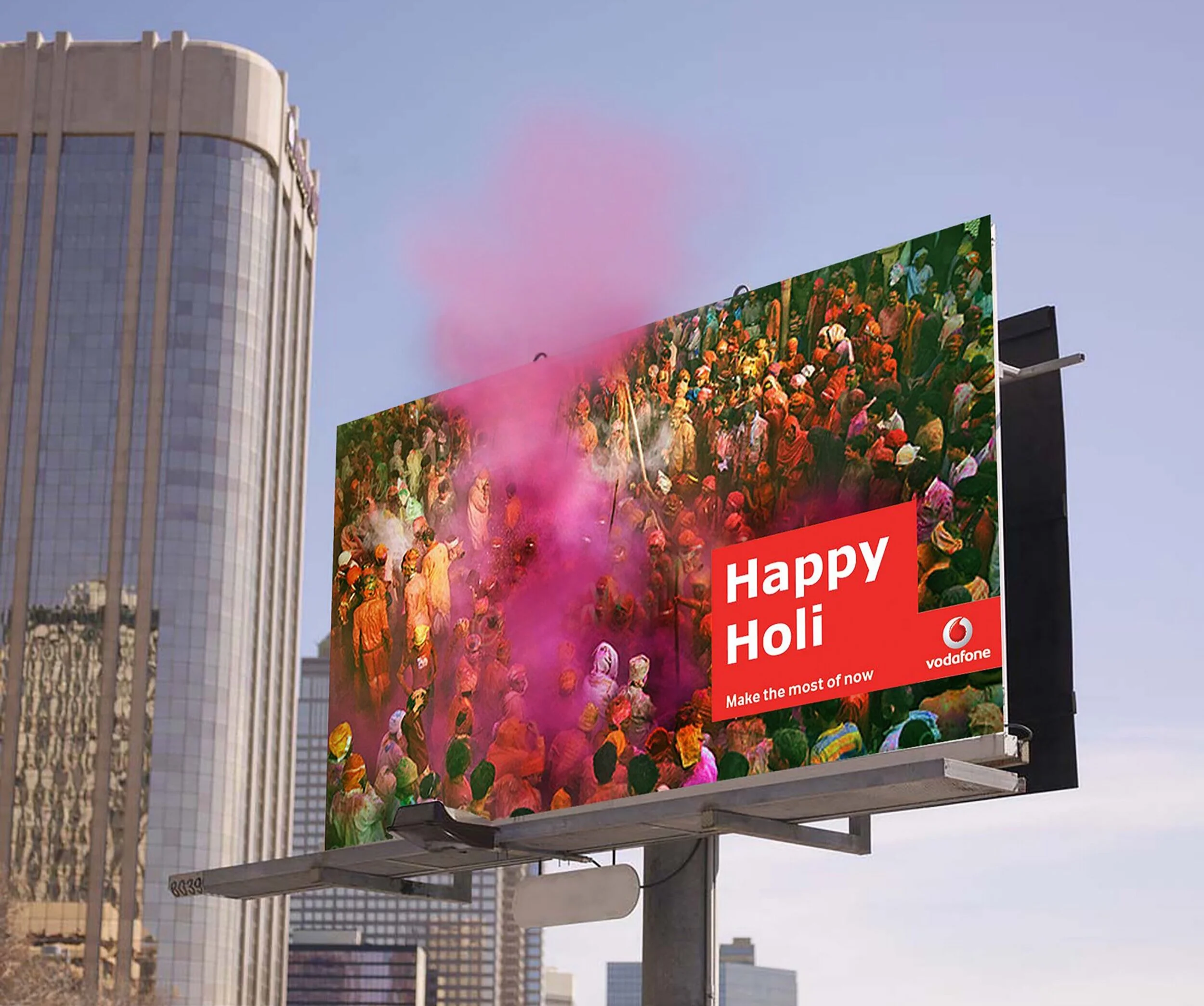 Holi - the Indian festival of colors is celebrated on a grand scale and with much fervor across the country. It marks the arrival of spring and brings a lot of joy to everyone who participates in this free-for-all carnival of colors. On this occasion to spread the joy of Holi as well as strengthen the brand essence among the consumers, what if Vodafone created an innovative billboard that comes to life by dispersing colors with the help of an artificial fog machine.